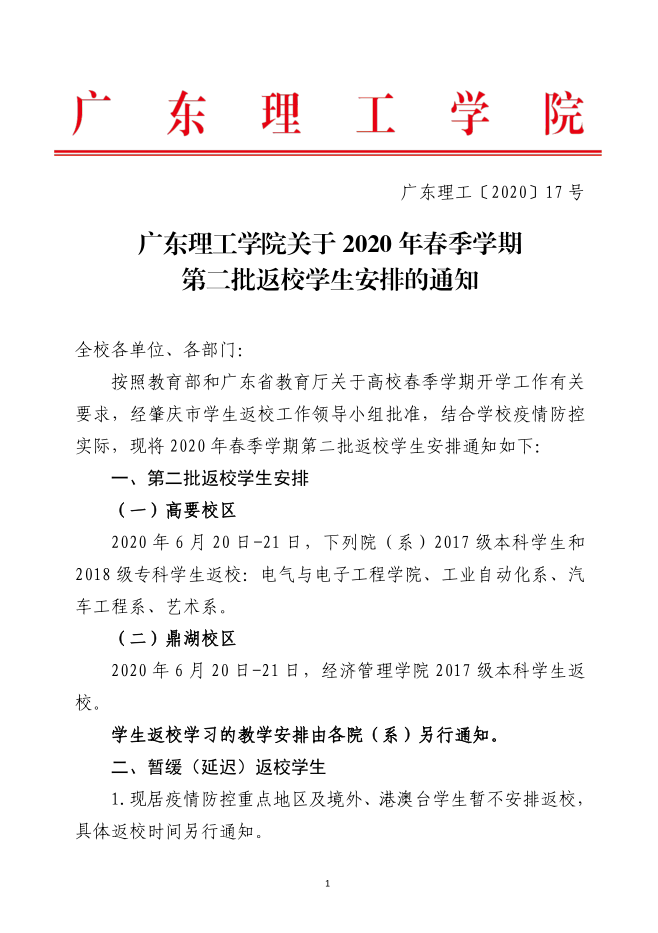 关于2020年春季学期第二批返校学生安排的通知