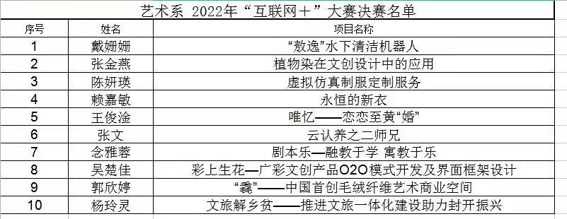 本网讯(艺术系新闻中心 彭建皓/邹宜含)“已至高台唱战歌,万炼为今决雌雄。”艺术系2022年“互联网+”大赛初赛,已圆满结束,感谢艺术系学子们的积极参与。