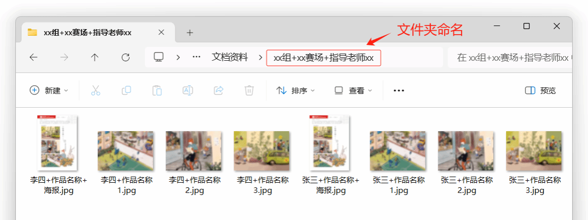 命名格式: xx组+xx赛场+指导老师:xx .zip (见下图)