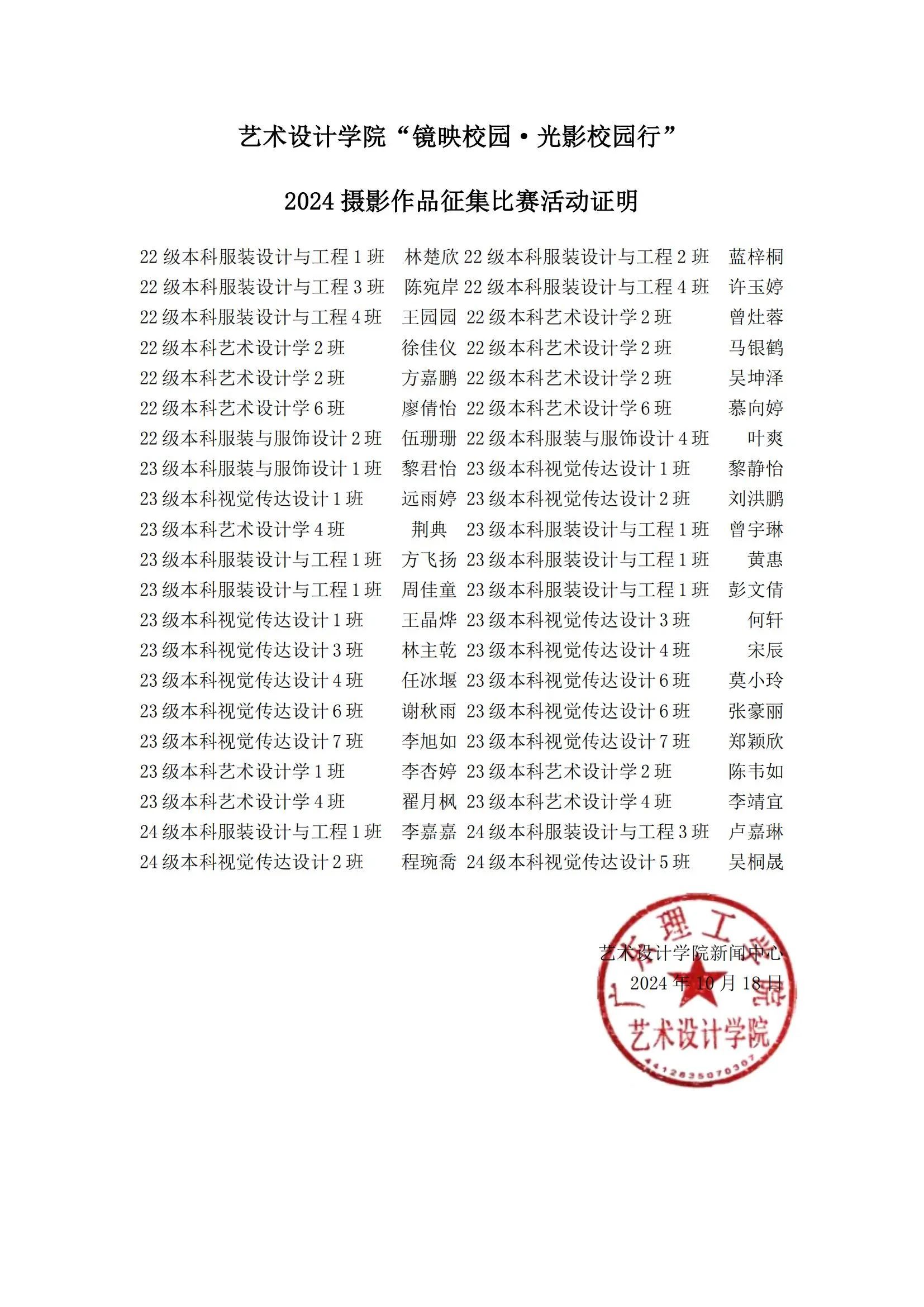 本网讯(2138cn太阳集团城新闻中心 吴桐晟/吴坤泽)为了让同学们深入发现并记录校园的美好瞬间,增添大学生活的精彩回忆,同时为摄影爱好者提供一个展示的平台,培养同学们对摄影艺术的兴趣,鼓励大家走出宿舍,积极运动,细致观察身边的风景。2138cn太阳集团城新闻中心特此举办“镜映校园·光影校园行”主题摄影大赛。经评委评选,比赛获奖作品名单如下,现予以公示。