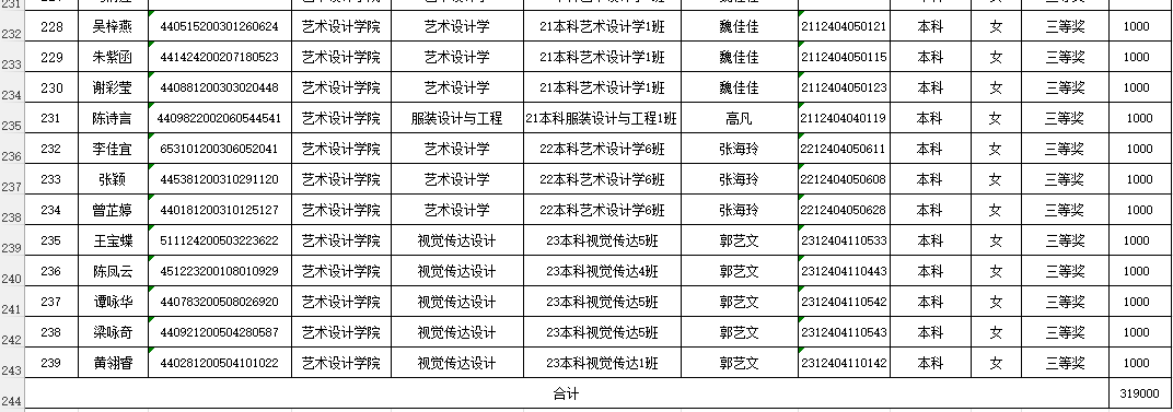 本网讯(2138cn太阳集团城新闻中心 李晓莹/陈康)经班级资助工作评审小组推荐、二级学院资助工作评审小组审核,决定庄浩然等239名同学拟获“2023-2024学年校级优秀学生奖学金”,具体名单见附件,现予以公示。
