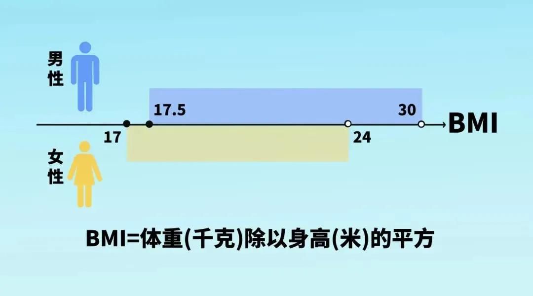 男性:17.5≤BMI<30,其中:17.5≤男性身体条件兵BMI<27;