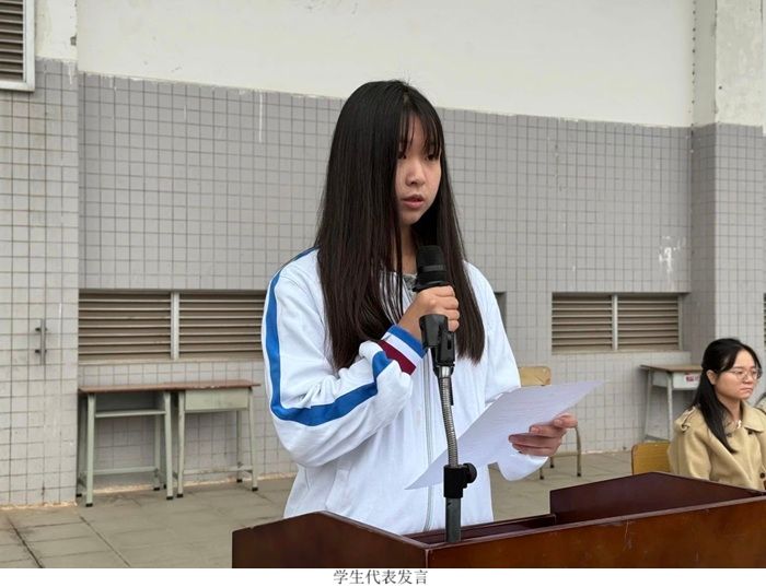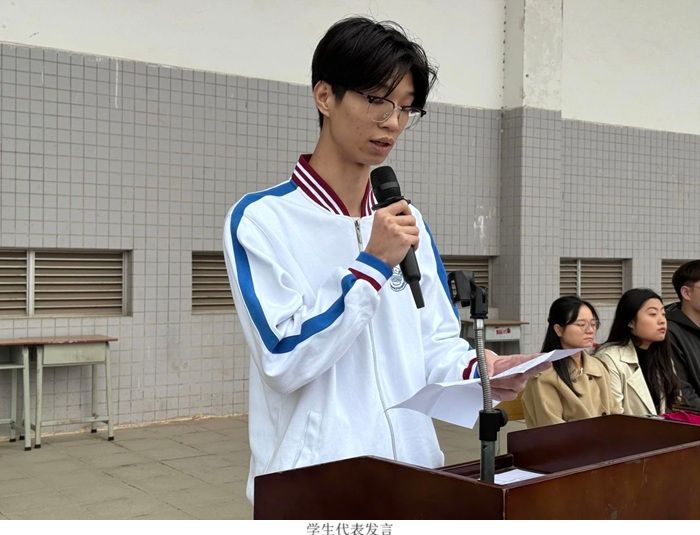 在升完国旗后,首先由陈彩云院长发言:身处伟大时代的浪潮之中,我们每个人都肩负着责任与使命,无论梦想大小,都有绽放光芒的舞台。展望未来,前行的道路或许依旧充满挑战,但只要我们齐心协力,怀揣梦想,以奋斗为底色,定能披荆斩棘,绘就绚丽蓝图。