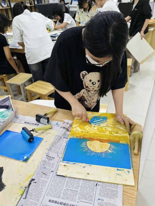 从设计稿构思、制版雕刻、调墨印制,全流程沉浸式体验,让学生体验从一张白纸到艺术成品的全过程。