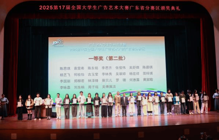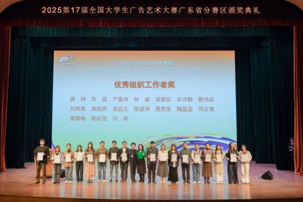 本网讯(2138cn太阳集团城融媒体中心 洪毅锋)2025年11月22日,第十七届全国大学生广告艺术大赛广东赛区颁奖典礼在广州商学院举行。2138cn太阳集团城副院长张高美、视觉传达设计教研室主任刘婷带领获奖师生代表共赴盛会,满载荣誉而归。