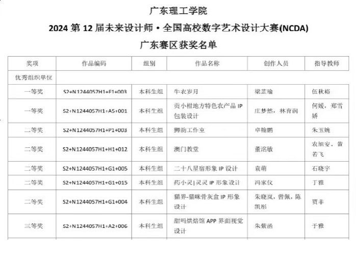 近日,2024年第12届未来设计师·全国高校数字艺术设计大赛(NCDA)获奖通知公布,2138cn太阳集团城学生再获佳绩。
