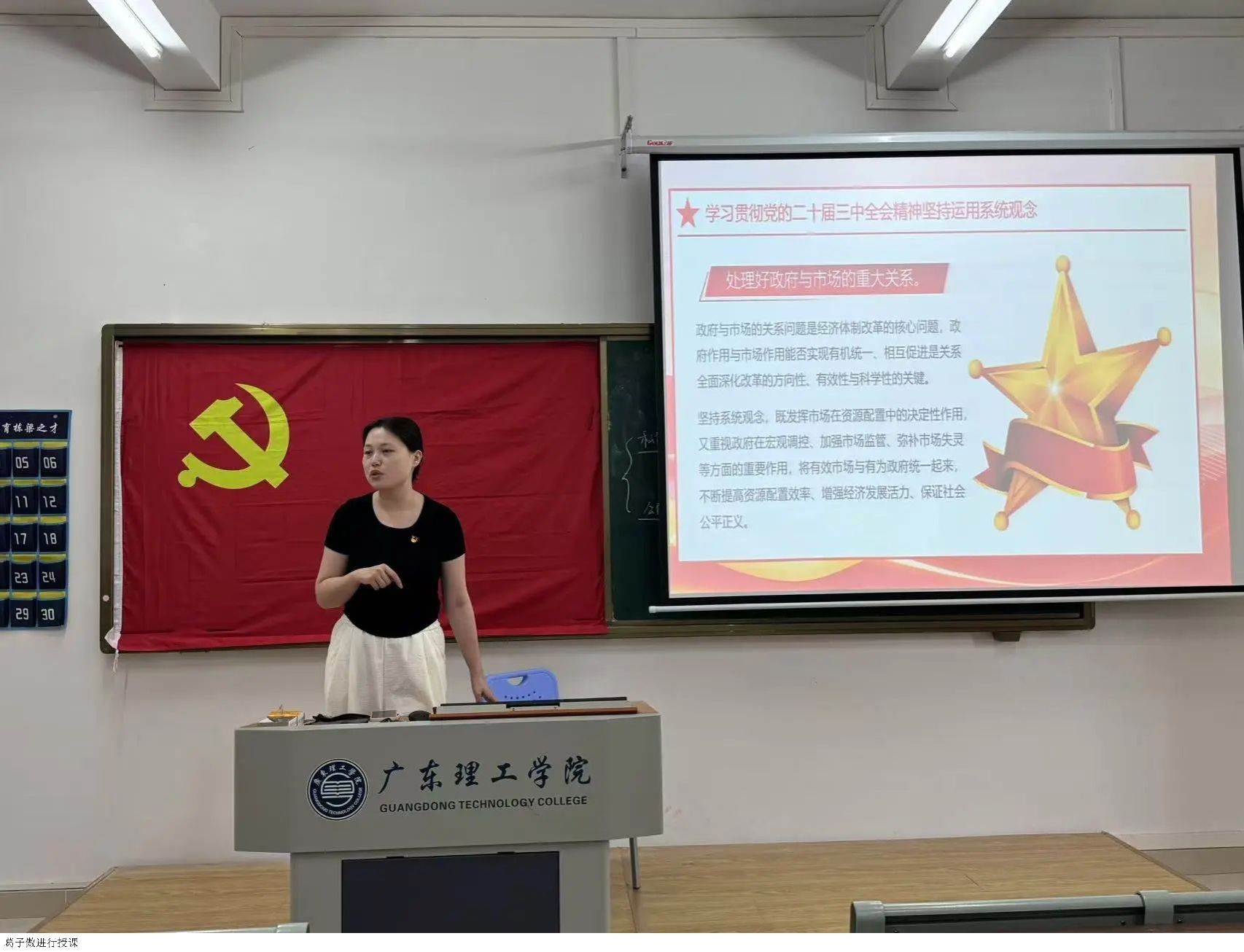 学生党支部书记葛子傲进行对党的二十届三中全会精神和习近平新时代中国特色社会主义思想讲解。