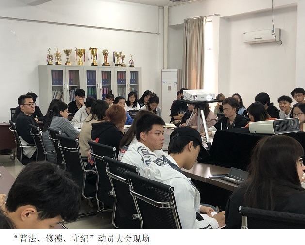 本网讯(艺术系宣传部 邓堪柳)为全面贯彻党的教育方针,落实立德树人根本任务,坚持和落实“依法治校,以德治校”工作,艺术系于2021年10月18日12时10分,在艺术系二楼会议室召开了“普法、修德、守纪”专项活动动员大会,艺术系全体辅导员老师、21级新生各班班长和团支书以及艺术系全体学生党支部成员参加会议。