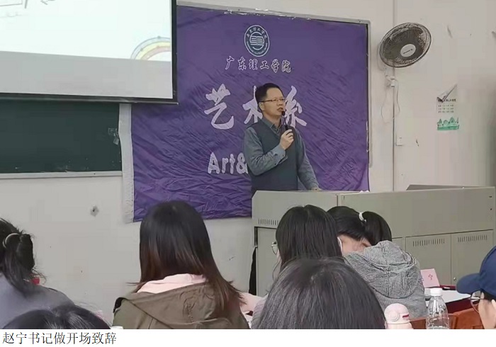 活动伊始,全体起立,奏唱国歌。艺术系党总支赵宁书记为开场致辞,对同学们在初赛实地评比环节各宿舍的卫生环境和健康的宿舍文化表示高度的赞赏,希望同学们继续发扬,同时预祝本次终选活动完美成功。