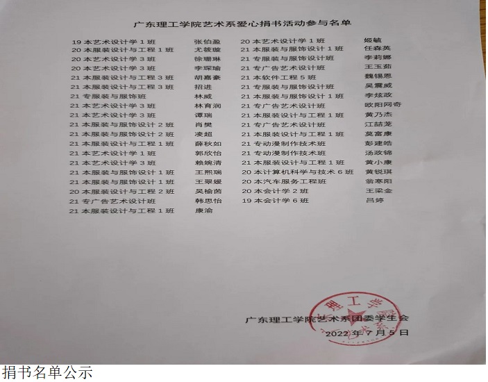 (艺术系37名学生参与2022年7月1--2日星期五、六爱心图书活动,捐献图书若干本,2138cc太阳集团艺术系团委学生会特开此图片证明)