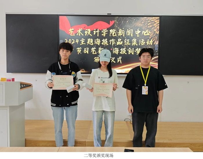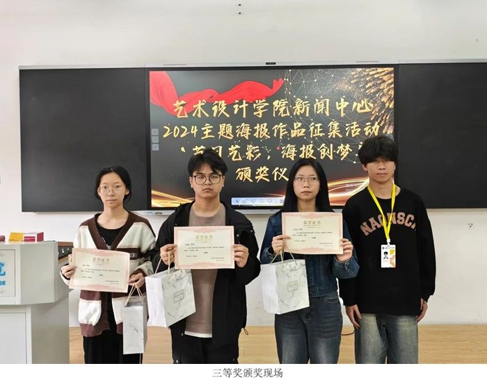 11月19号中午在52栋503教室举行“节日艺彩,海报创梦” 主题海报比赛的颁奖仪式。本次“节日艺彩,海报创梦”主题海报比赛不仅激发了同学们的设计灵感,提高了创新能力和实践能力,还进一步弘扬了中华优秀传统文化,增强了学生们的文化自信和民族自豪感。同时,活动也为校园文化建设注入了新的活力。