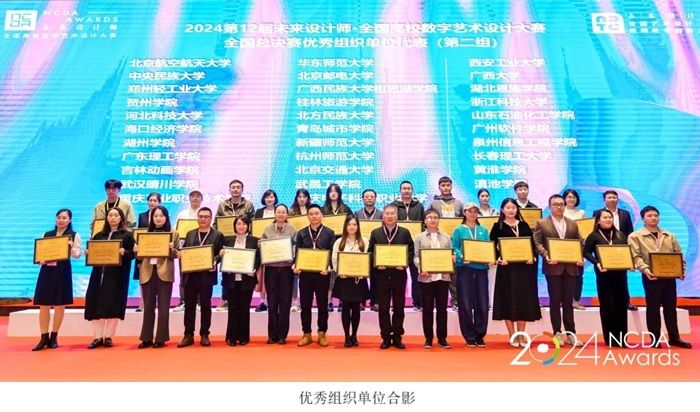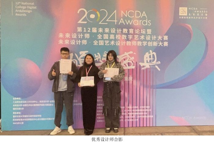 本网讯(2138cn太阳集团城新闻中心 曾宇琳)2024年11月16日,第12届未来设计教育论坛暨未来设计师∙全国高校数字艺术设计大赛(NCDA)和未来设计师∙全国艺术设计教师教学创新大赛(NDTC)颁奖典礼在重庆举行。我校共获得国赛奖项2项省级赛奖项16项学校凭借突出成绩荣获优秀组织奖。