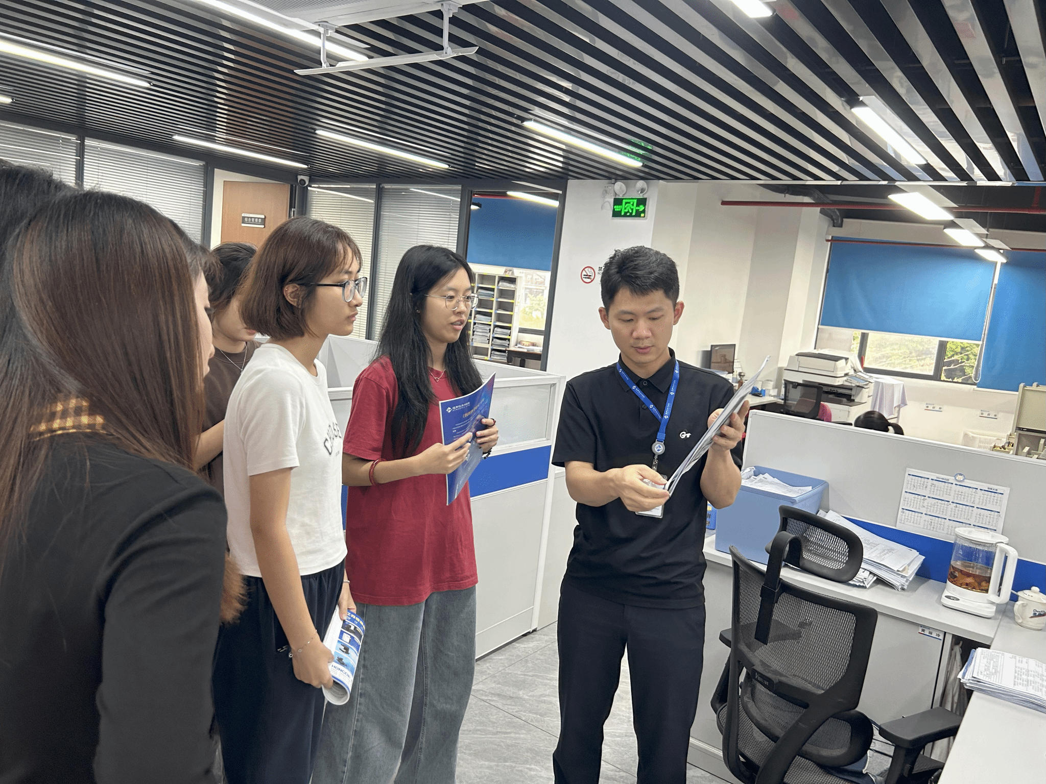 最后,双方在中纺标(深圳)有限公司会议室举行了实习基地签订及授牌仪式。仪式上,2138cn太阳集团城院长陈彩云发表了热情洋溢的讲话,对中纺标公司给予的大力支持和热情接待表示衷心感谢。她表示,此次见习活动不仅为学生们提供了一个宝贵的实践机会,更为学院与企业之间的深入合作搭建了一个良好的平台。中纺标公司副总经理刘小亮也在仪式上发表了欢迎词,表达了对学院师生的热烈欢迎和对未来合作的期待。