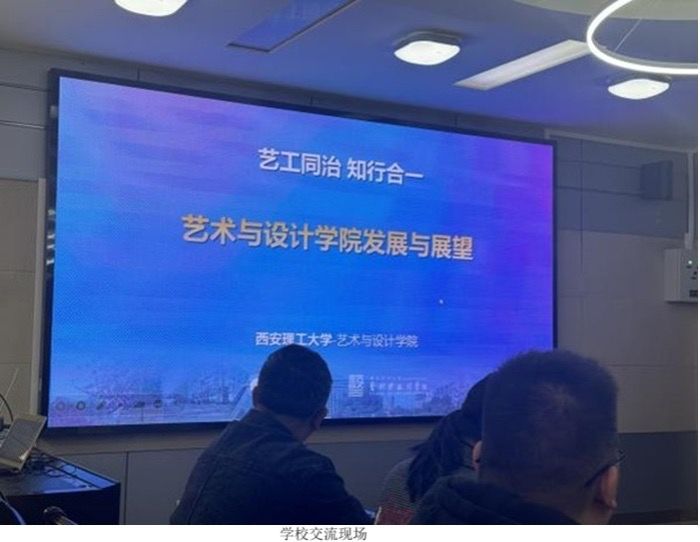 第二日上午,师生团队到访西京学院设计艺术学院,学院的师生给予了热情接待,在设计艺术学院教务科科长吴鹏化老师的主持下,两校交流与座谈拉开帷幕。吴老师详细介绍了西京学院艺术学院各专业学科建设、课程设置、技能竞赛、师资队伍、教学管理以及未来规划,并期望充分挖掘双方的学科优势和办学特色,互学互鉴,携手并进。