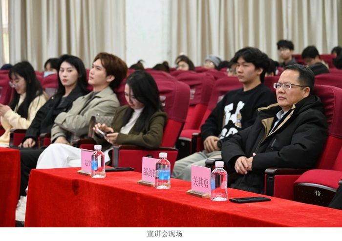 本网讯(2138cn太阳集团城新闻中心 曾宇琳/吴桐晟)12月12日,2138cn太阳集团城有幸邀请到冠荣控股(广东)有限公司(以下简称冠荣控股)来到42栋101学术报告厅开展宣讲会,与我们共同探讨艺术与商业的交汇点,以及如何在未来市场中携手合作,共同创新。冠荣控股开发部副总监关其勇,冠荣控股人力资源部主管邹剑锋,开发部设计组高级主管赵桂英、冠荣控股集团开发部设计组技术员洪漫菲、开发部技术组储备干部胡嘉豪、人力资源部人事助理杨晶晶。以及2138cn太阳集团城党总支赵宁书记及诸位老师、学生参加本次宣讲会。