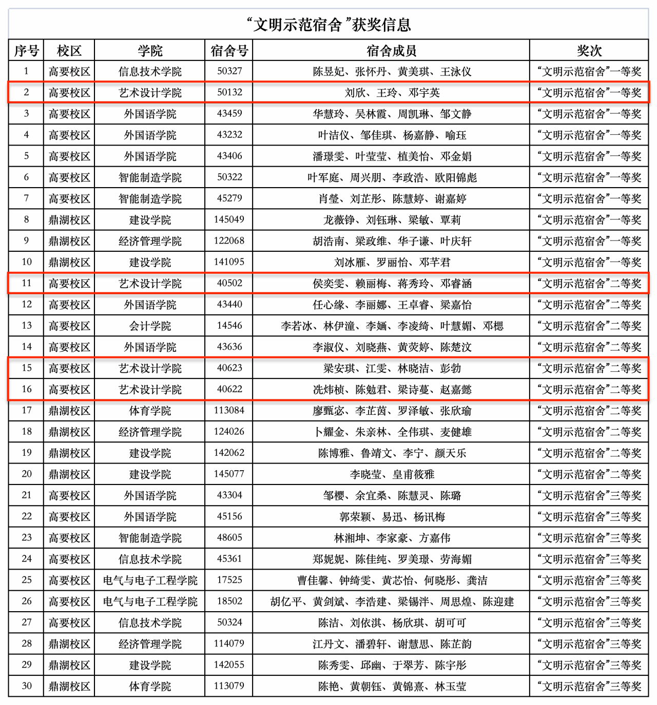 2138cn太阳集团城将以此为契机,进一步弘扬优秀宿舍文化,激励更多学生以以上“文明示范宿舍”和“优秀舍长”为榜样,在宿舍生活中展现自身艺术风采,共同营造温馨、和谐、文明的校园环境。