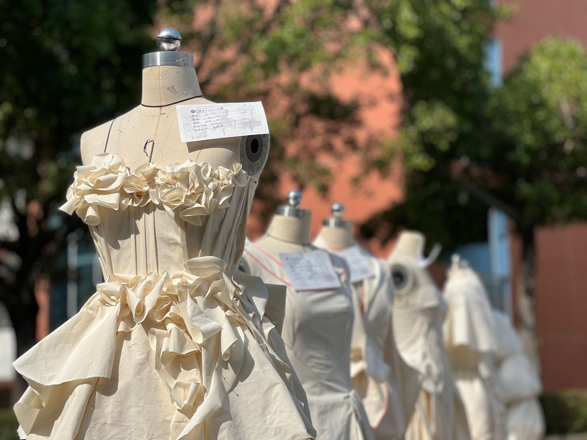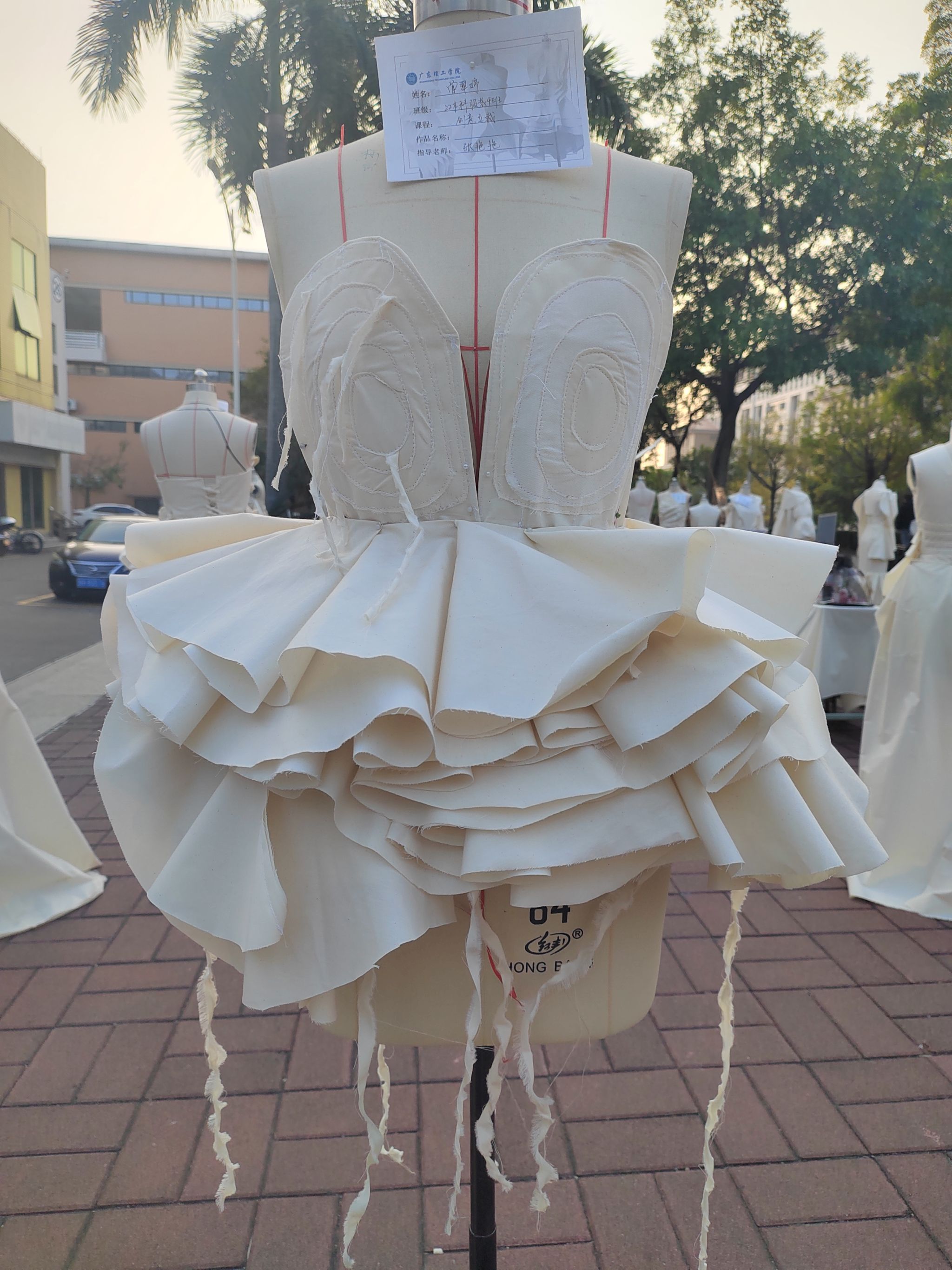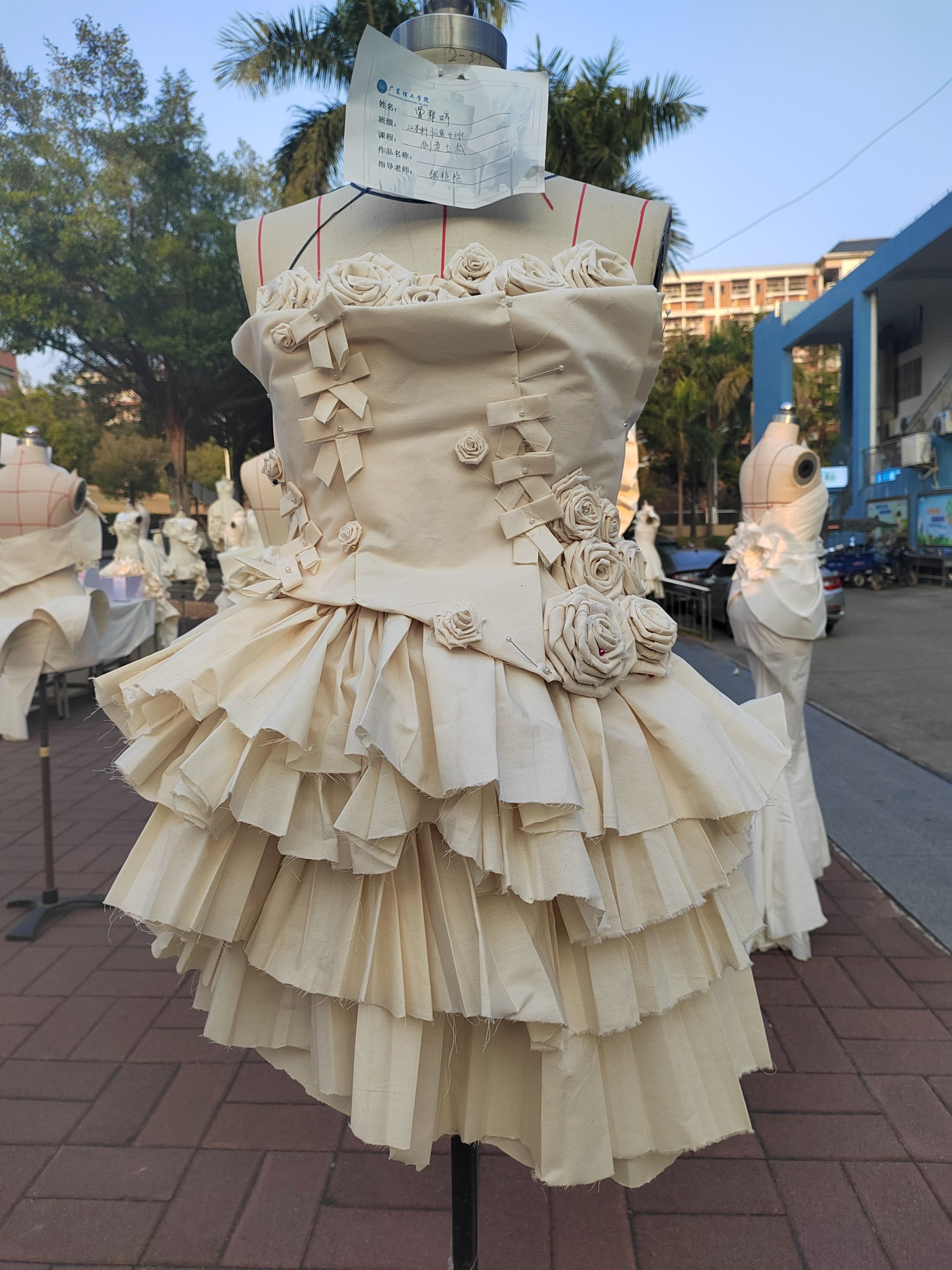 这两门衔接紧密的课程,助学生从基础迈向创意高峰。前期学员专注学习省道转移、余量把控等基础技能,后续点燃创意,以人台为灵感,融入奇思。展览中,作品多样,有的似春日花园搬上 T 台,用花瓣、花蕊形态化作服装褶皱与装饰,优雅浪漫;有的借鉴先锋艺术,以大胆几何、冲突打造潮服,尽显年轻设计师的创新。各类礼服、休闲装充分展现立体裁剪的多元与拓展性。