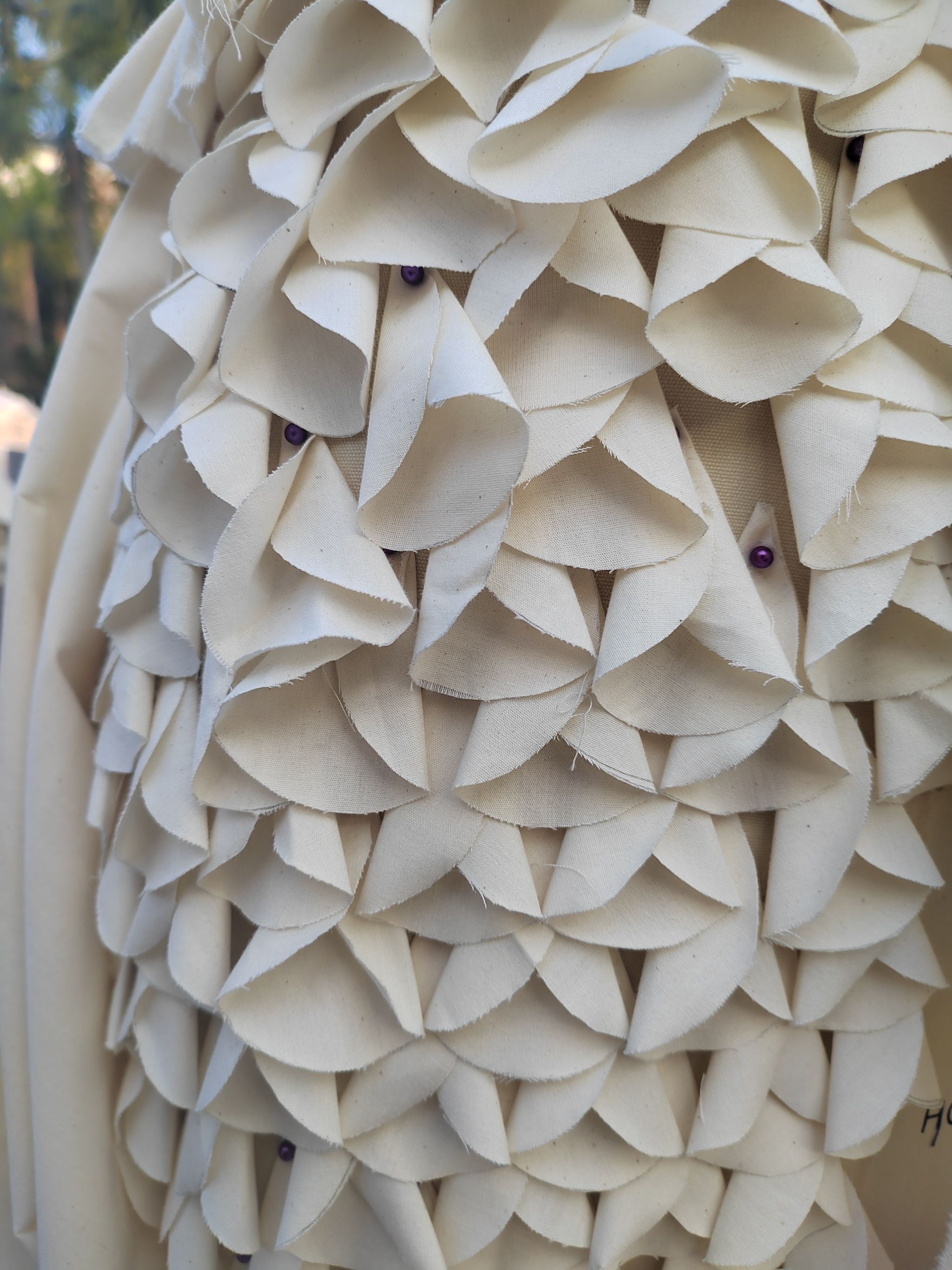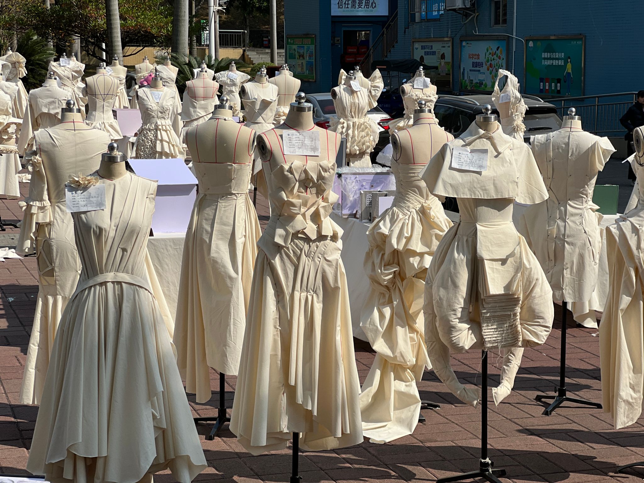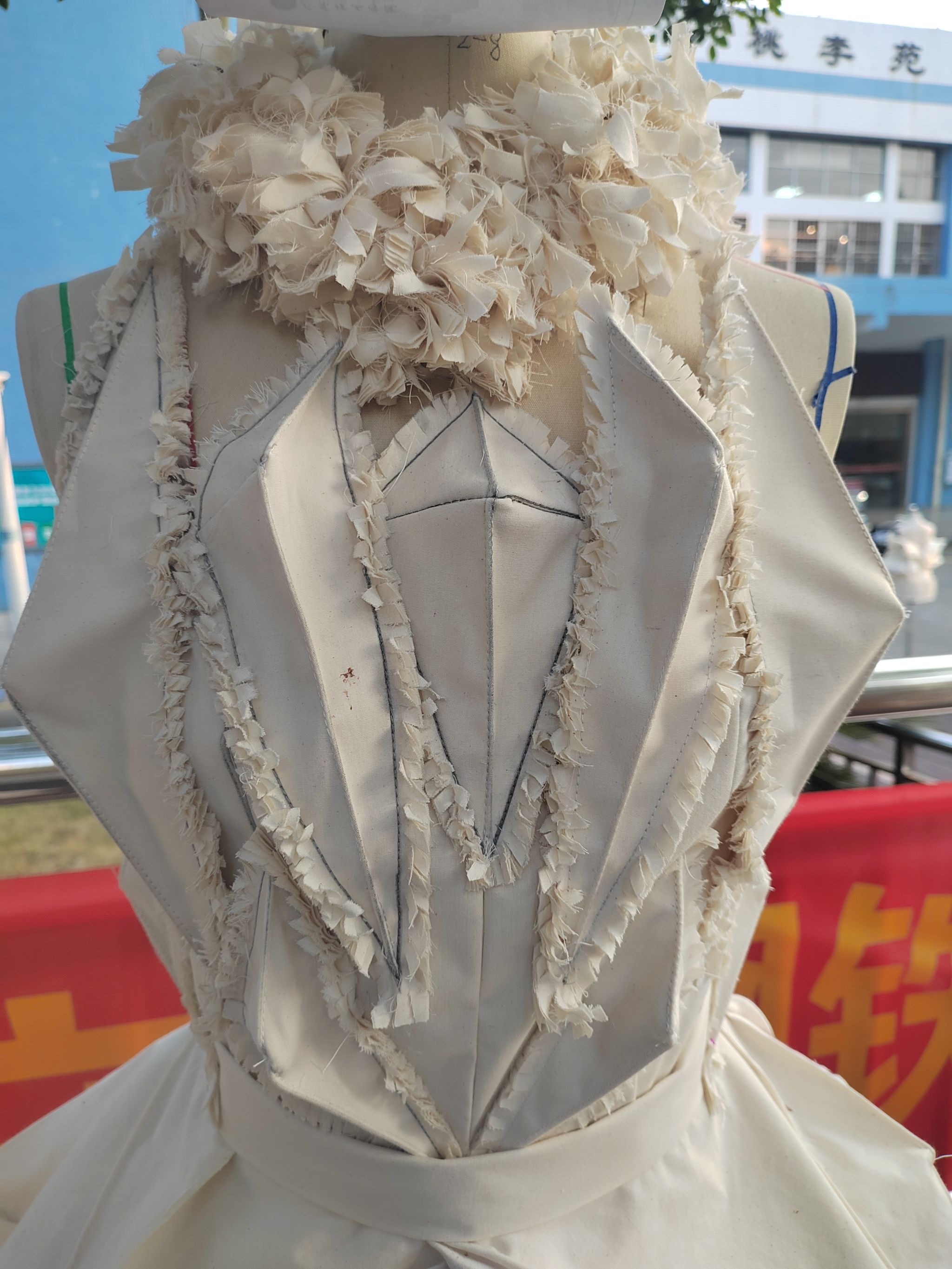 这两门衔接紧密的课程,助学生从基础迈向创意高峰。前期学员专注学习省道转移、余量把控等基础技能,后续点燃创意,以人台为灵感,融入奇思。展览中,作品多样,有的似春日花园搬上 T 台,用花瓣、花蕊形态化作服装褶皱与装饰,优雅浪漫;有的借鉴先锋艺术,以大胆几何、冲突打造潮服,尽显年轻设计师的创新。各类礼服、休闲装充分展现立体裁剪的多元与拓展性。