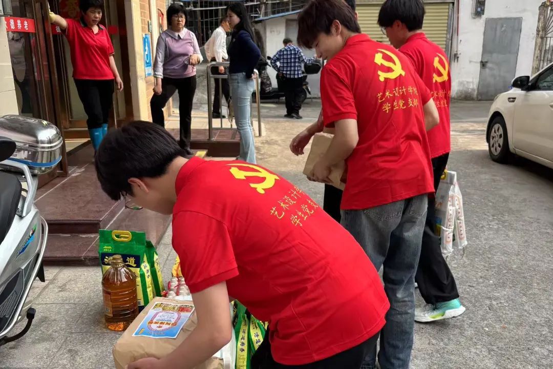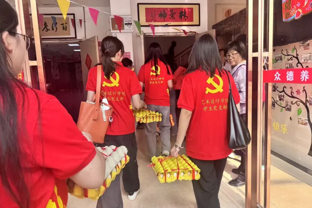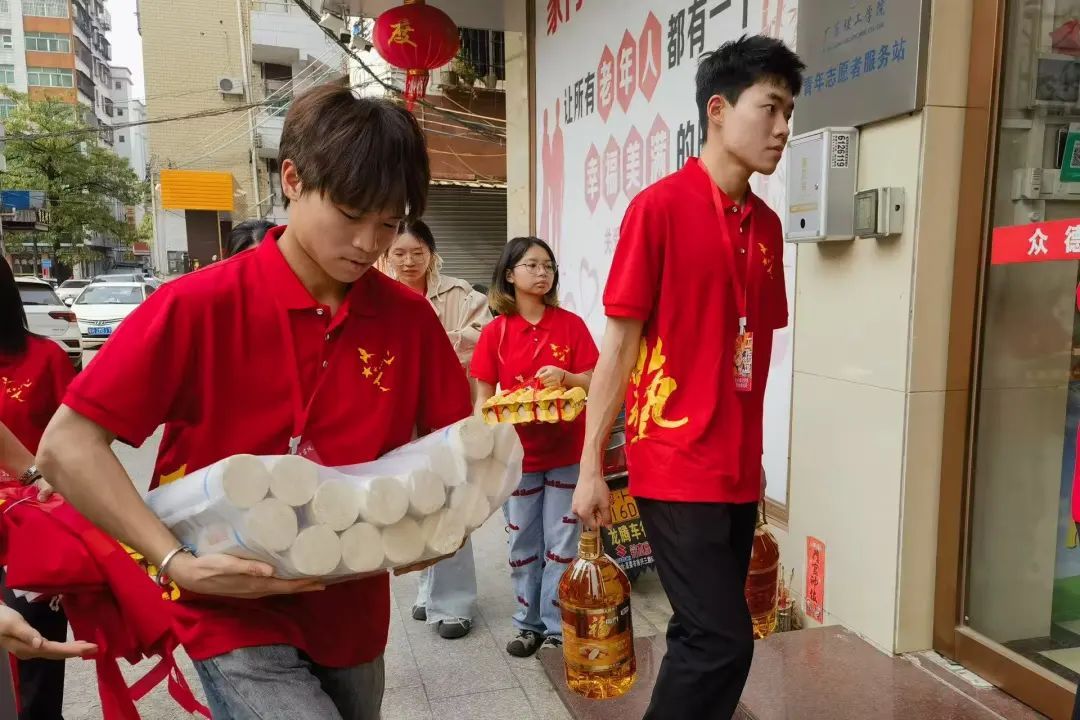 在养老院负责人的带领下,赵宁书记、葛子傲老师与同学们满怀诚挚关爱之情为老人们一一分发鸡蛋、牛奶等慰问品,以及大米、食用油、面粉等生活物资。发放过程中,赵宁书记关切地与老人们交流,仔细询问他们的日常生活、健康状况以及实际需求,认真倾听老人们的心里话,并衷心叮嘱他们一定要保重身体,乐观积极地面对生活。