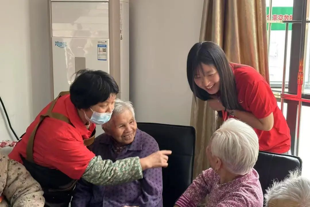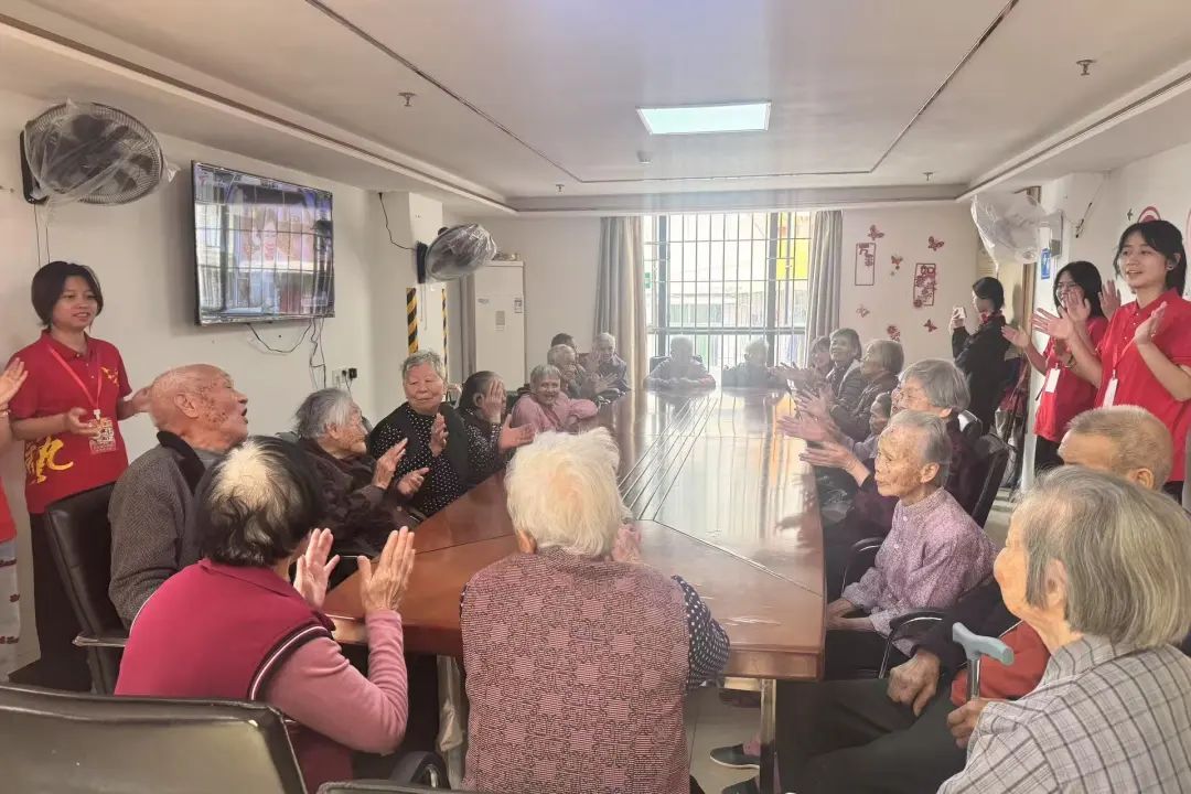 老人们对大家的到来表示热烈欢迎,脸上洋溢着温暖的笑容。同学们围坐在老人身边,亲切地与他们谈心,耐心倾听老人讲述过去的故事,老人们还带领同学们一起唱《没有共产党就没有新中国》。现场氛围热烈且充满感染力的。老人们饱含深情,用他们经历岁月沉淀的声音传递着对党的深厚情感,同学们则满怀敬意,认真投入地学唱。歌声激昂有力,回荡在空气中,仿佛将大家带回到那段波澜壮阔的历史岁月。结束后,现场响起了热烈的掌声,老人们脸上露出笑容,是对我们极大的鼓励。此次养老院志愿服务活动不仅为老人们带去了欢乐与温暖,更展现了当代大学生的社会责任感与奉献精神。通过此次活动,深刻体会到了尊老敬老的重要性,也更加坚定了他们为社会传递爱心与正能量的决心。