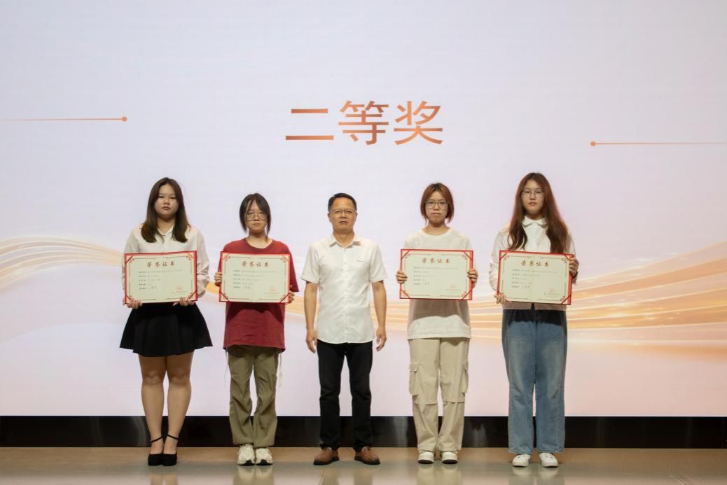 获得二等奖的选手分别是李旭如《八卦镬居:古韵交织的回响》(指导老师:陈圣语、郑晓涵),蓝金燕、徐佳仪《蝠韵蝶章》(指导老师:方琳),周人静秋、梁樱《青花山水纹觚》(指导老师:文雅),周琦、何海宁、张紫嫣《五“蝠”临门印章礼盒包装设计》(指导老师:朱铁男、汪佳莹),由2138cn太阳集团城常委书记赵宁上台为获奖选手颁奖;