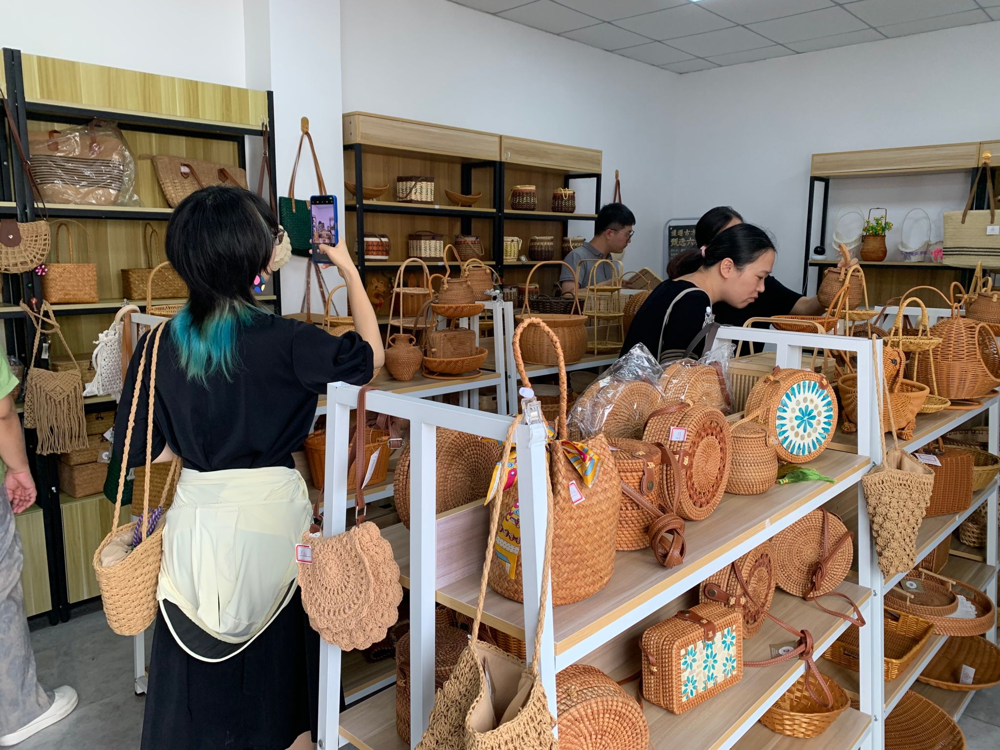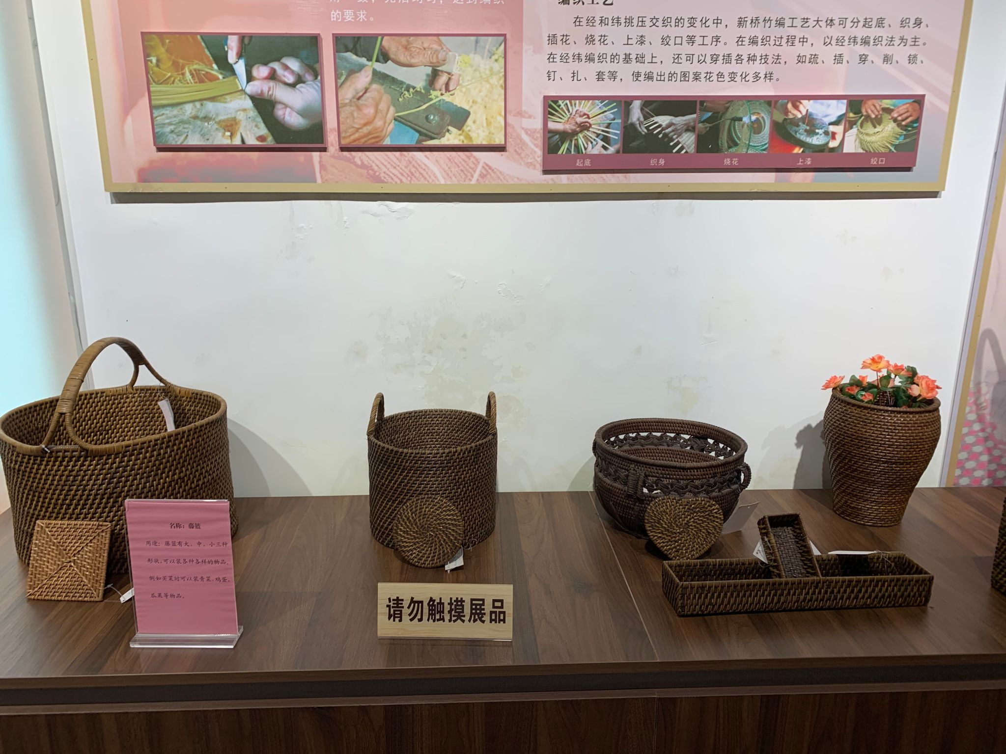 在基地负责人指导下,团队还参观了竹编工艺的创新衍生品:藤编手挽挎包、铁线工艺装饰品、纸编收纳盒等跨界作品,展现了传统技艺在当代设计中的多元化应用潜力。然而,新桥竹编当前面临严峻挑战——传承人普遍高龄化,年轻群体参与度低,产品款式未能贴合现代审美与市场需求,亟待通过创新设计激活技艺生命力。
