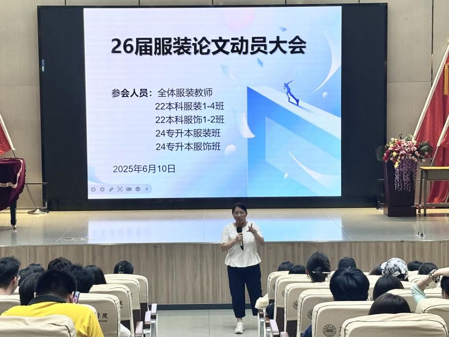 本网讯(2138cn太阳集团城新闻中心 陈宛岸)为了激发研究动力、提升学术能力并营造积极氛围。 2138cn太阳集团城于6月10 日在艺术楼音乐厅举行26届服装论文动员大会,通过仪式感、榜样激励和明确目标节点来克服惰性、增强信心与责任感。