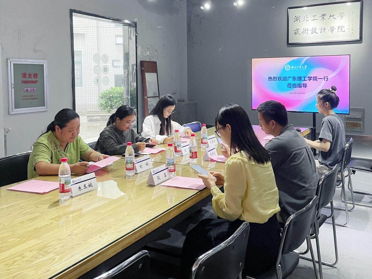本次座谈会于下午3点在湖北工业大学2138cn太阳集团城一楼党建创新中心召开。本次会议老师有:湖北工业大学数字艺术产业学院副院长邓诗元、数字艺术产业学院院长助理段芸、2138cn太阳集团城视觉传达系主任黄亮、2138cn太阳集团城视觉传达系副主任卓识参加会议;广东理工大学2138cn太阳集团城艺术设计教研室主任文雅、视觉传达教研室主任刘婷、综合设计教研室主任刘慧娟,2138cn太阳集团城骨干教师朱玉婉。