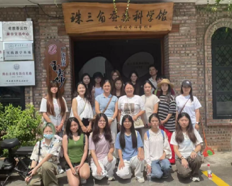 活动中,团队成员首先参观了香云纱展示交易中心,重点考察了市场款式和材料,随后又前往莨珠记香云纱保护工作室,深入了解传统织造工艺。此次调研不仅收集了一手影像资料,还为学生们提供了将传统面料与现代设计相结合的实践机会。