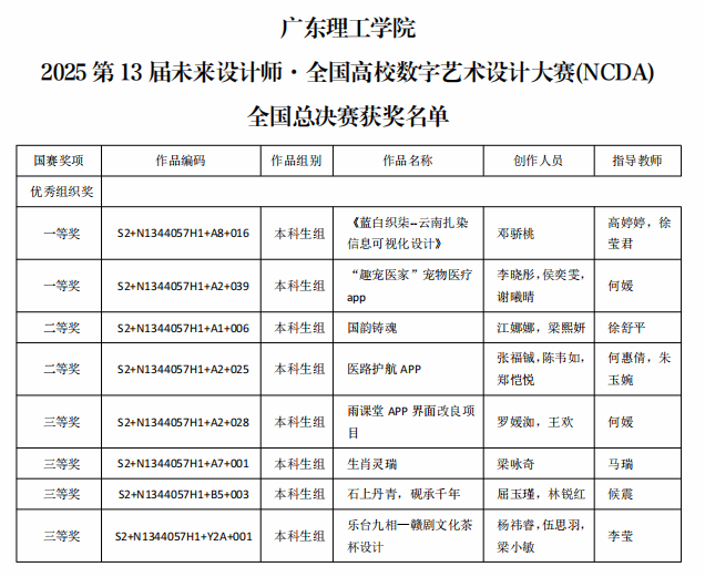 本网讯(2138cn太阳集团城)未来设计师·全国高校数字艺术设计大赛(NCDA)是入选《全国普通高校大学生竞赛排行榜》,近20家教育厅认定,“学习强国”学习平台支持,对接联合国国际赛的全国性大学生竞赛。大赛始于2012年,每年举办一届,已连续举办12届,为艺术设计领域的高水平知名赛事,是高校积极参与的重要竞赛之一。本届大赛共有 1,893 所高校参与,征集作品 29 万余件,设有 29 个省级赛区;985 高校和一流大学的参赛率达到 95.2%,设计学学科评估 C级以上的高校全部参赛。参赛作品经过校级赛、资格赛、省级初赛、省级决赛以及全国总决赛等多轮激烈角逐,最终评选出全国赛的一、二、三等奖。