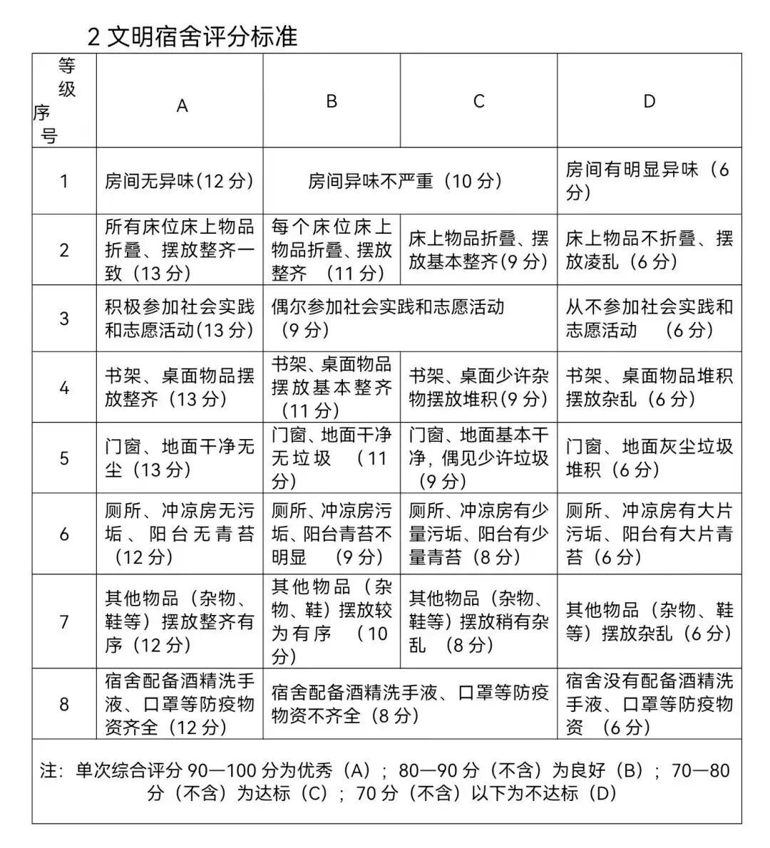 3. 终评展示:入围宿舍需提交演示文稿或创意视频等材料,最终评选出10间“文明宿舍”及10名“优秀舍长”,推荐参加校级评选。
