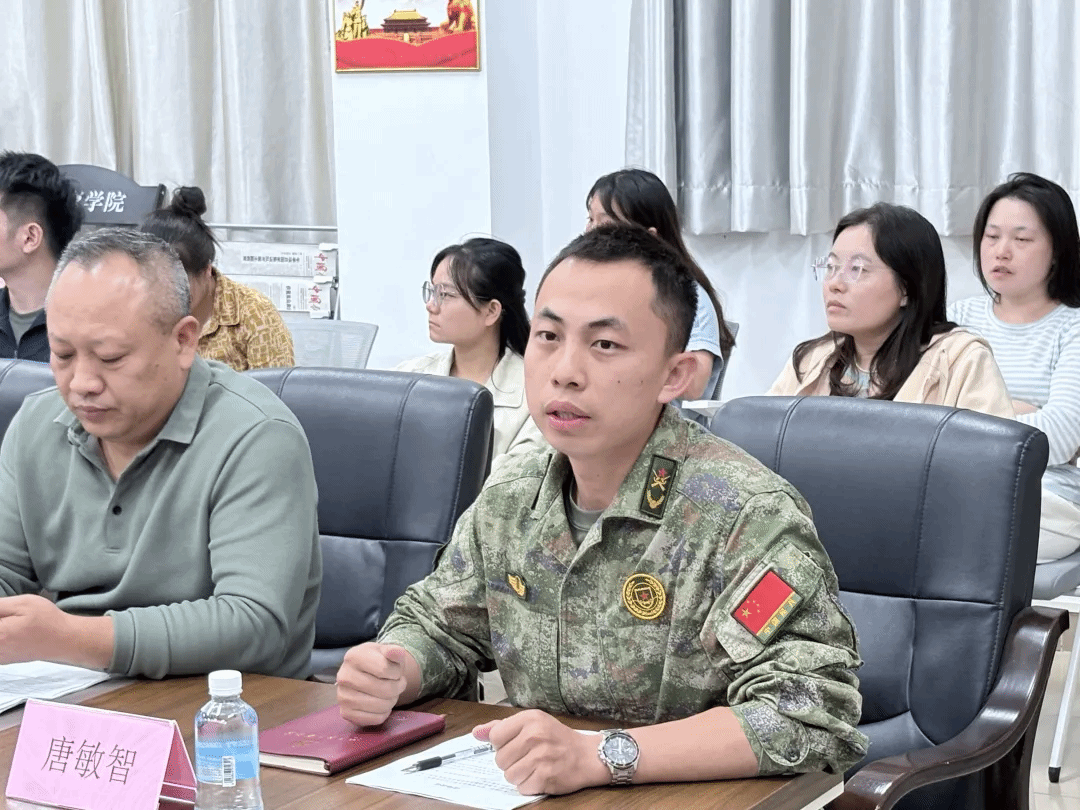 强调各部门、各学院需紧密协作,形成“上下联动、齐抓共管”的征兵工作格局。在政策分享环节,唐部长围绕大学生入伍的核心价值与意义展开阐述,结合当前国防建设需求,鼓励青年学子以青春之名投身军营,同时重点梳理了2025年大学生入伍最新政策框架,为后续专项解读做好铺垫。