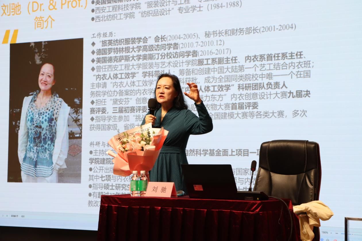 在互动交流环节,现场师生围绕设计灵感转化、工艺实现难点、行业发展趋势等问题踊跃提问,刘驰教授结合自身超过37年的教学与科研经验,以及担任多项国际内衣设计大赛评委的丰富阅历,给予了详尽而专业的解答,现场气氛热烈,学术氛围浓厚。刘驰教授作为英国曼彻斯特大学博士,不仅是西安工程大学首个“内衣人体工效学”二级学科的奠基人,还公开出版专著、译著10部,发表论文近两百篇,指导硕士研究生50人,在内衣设计与工程领域享有崇高的学术声望。