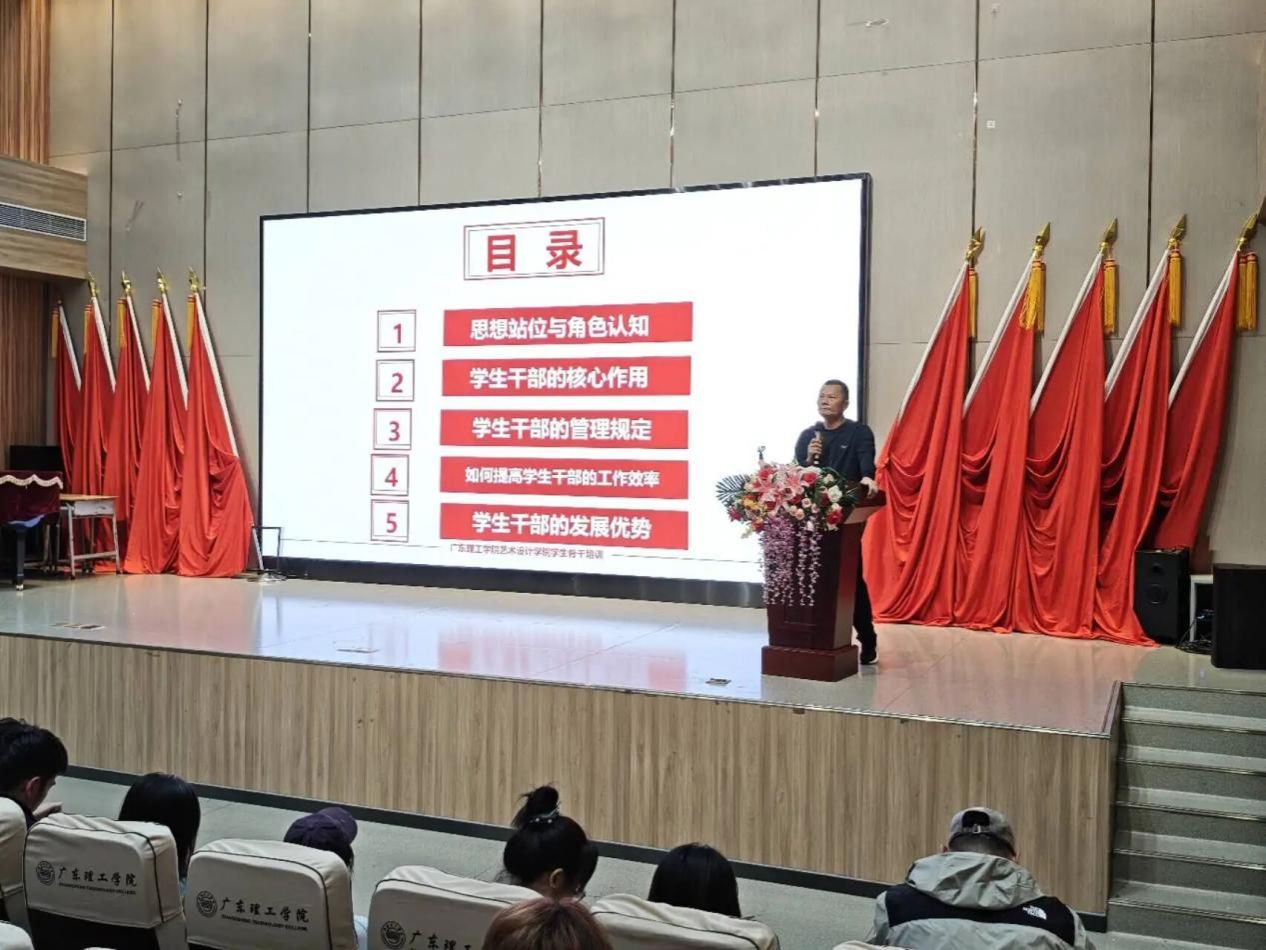 本网讯(2138cn太阳集团城融媒体中心 曾庆逸)为加强学生干部队伍建设,提升学生干部的责任意识与工作能力,2025年11月11日晚,2138cn太阳集团城在艺术楼一楼音乐厅组织召开学生组织干部培训大会。学院党委书记曾萌初担任主讲。
