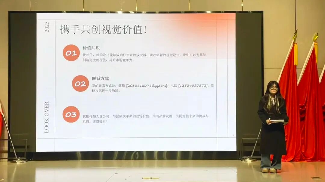 陈彩云院长高度肯定本次活动,称其为学子搭建了职业探索与能力展示的优质平台,充分彰显艺设青年的专业素养与规划意识。她寄语学子以活动为契机,深入思考职业方向与发展目标,在参与中积累经验、锤炼本领,将设计初心融入成长之路,稳步迈向专业领域新征程。