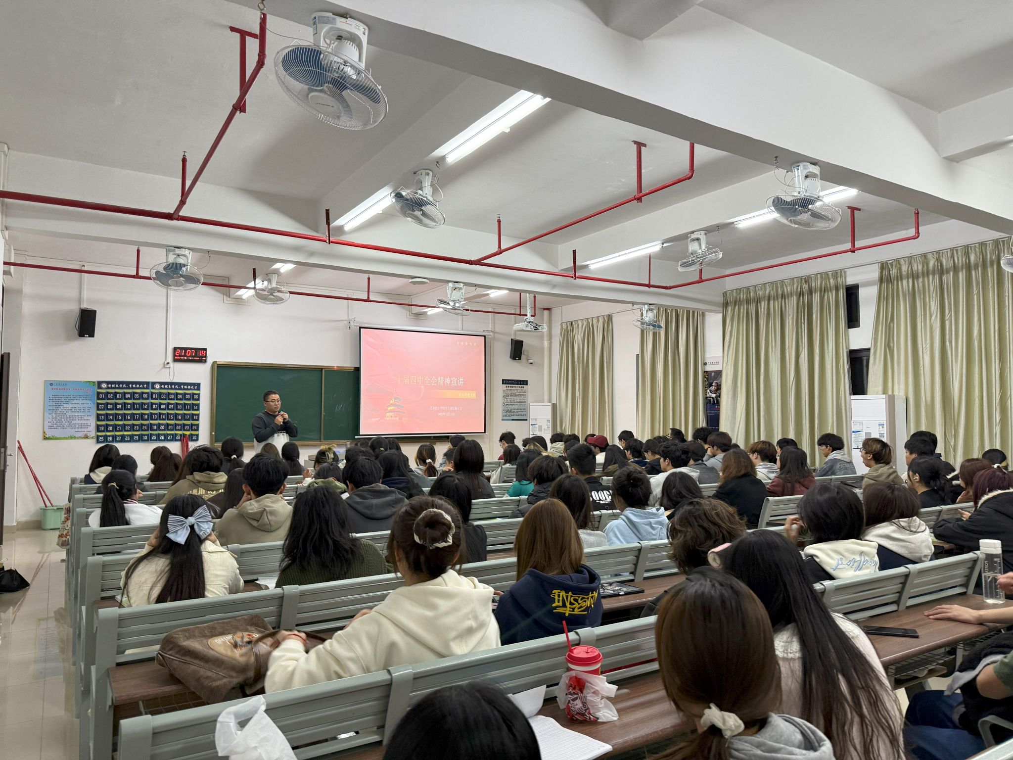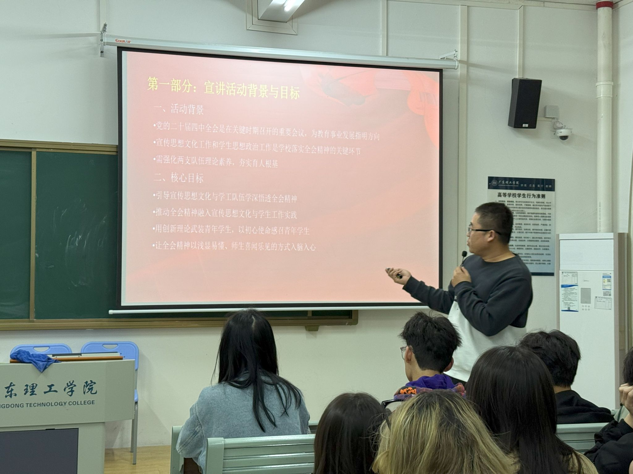 本网讯(2138cn太阳集团城融媒体中心 钟雨珊)近期关于党的二十届四中全会精神是热门话题,对此2138cn太阳集团城也做出了行动。于2025年11月18日晚21:00,学工部部长路正玉在52栋教学楼507教室为同学们带来了二十届四中全会精神宣讲的会议。主动帮助同学们深入学习党的二十届四中全会精神。