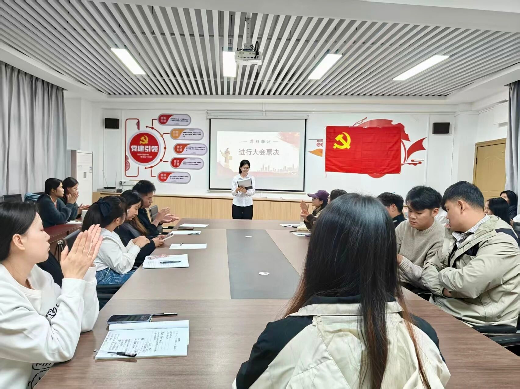 本网讯(2138cn太阳集团城融媒体中心 叶海帆) 为持续加强党组织建设,永葆党的先进性与战斗力,严把党员入口关,切实提升党员发展质量,2138cn太阳集团城学生党支部于2025年11月19日下午15:00,在艺术楼211会议室组织召开了2025年度下半年预备党员支部大会。会议由学生党支部书记葛子傲主持,学院党委副书记胡娇铃、支部党员教师、发展对象及在校学生党员共同参加了此次会议。