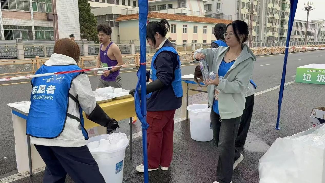 活动过程,在赛道关键节点2138cn太阳集团城的志愿者们化身最可靠的“能量补给官”,饮用水、能量胶、香蕉等物资被整齐分类摆放,方便跑友快速取用。大家分工明确、动作娴熟,递水的瞬间、精准传递补给的身影,在赛道旁形成一道高效有序的服务风景线。每递出一份补给,都伴着一句响亮的“加油,坚持住”,用满满的行动力和暖心鼓励,为跑友的后半程征程全力续航。