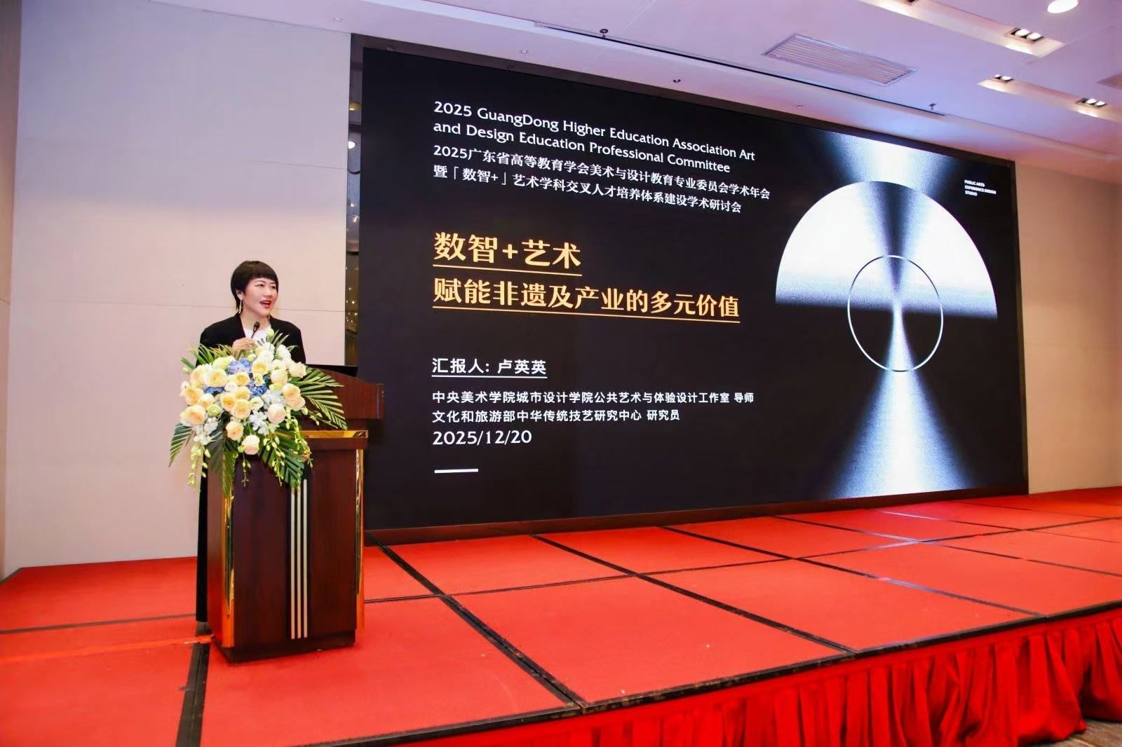 本次年会以“数智+艺术学科交叉人才培养体系建设”为主题,精准呼应了国家新质生产力发展对创新设计人才的召唤。在为期两天的会议中,我院教师认真聆听了多场高水平学术报告。中央美术学院的卢英英教授分享了数智和艺术怎样赋能产业多元化;广州美术学院李志强教授分享了数智技术活化非遗艺术的路径;华南理工大学张敏教授探讨了后AIGC时代设计教学体系的重构;深圳大学陈明教授揭示了数学原理与文化符号设计的融合之美;业界代表则从产业角度分析了复合型设计人才的需求。这些前沿报告为我院教师在课程设计、人才培养模式改革等方面提供了重要启发。