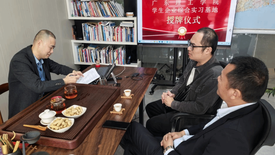 随后,曾荫初书记与张逸军总裁共同为校企合作基地揭牌,标志着双方合作正式落地。邱瑜玉主任与张逸军总裁就课程共建、实习实训、师资互聘等具体合作内容进行了细化沟通,达成多项共识。陈健伟老师结合专业教学实际,与企业相关负责人就实践教学安排、学生实习管理等事宜交换了意见。