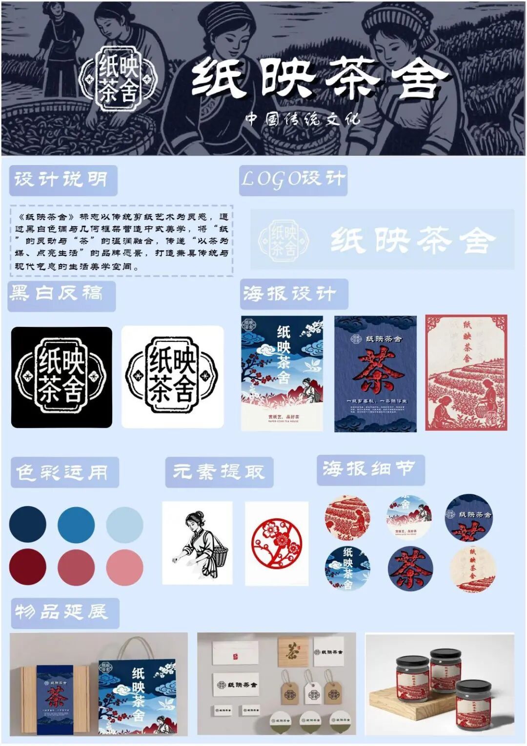 《纸映茶舍》标志以传统剪纸艺术为灵感,通过黑白色调与几何框架营造中式美学,将“纸的灵动与“茶”的温润融合,传递“以茶为媒、点亮生活”!的品牌愿景,打造兼具传统与现代气息的生活美学空间。