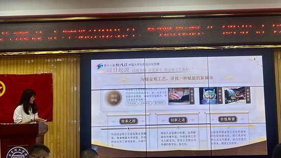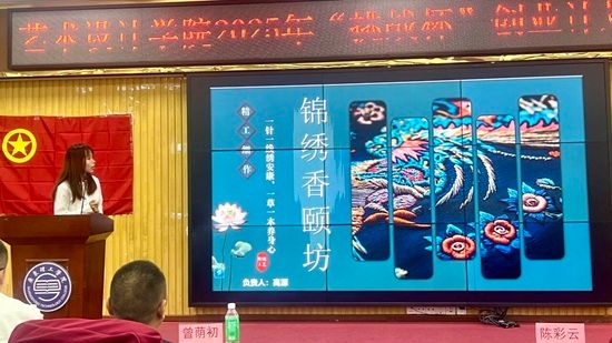 竞赛现场,13支参赛团队依次登台路演,展现了兼具创意性与可行性的创业构想。项目涵盖非遗活化、科技赋能、民生服务等多个领域:《庆阳香包 IP 形象设计及其衍生品开发》探索地域文化与市场的融合之道;《人工智能背景下广彩非遗创新设计与商业延展》以 AIGC 技术激活传统工艺;《智植云萃・AI 赋能科技慧养》用智能化设备破解绿植养护难题;《安馨陪护》聚焦老年人、残疾人等群体需求,让人工智能为医疗陪诊注入温度;《竹迹未来》以非遗竹编为载体,助力乡村振兴与红色文化传播。各团队从项目背景、商业模式、市场分析、风险防控等方面展开详细阐述,充分展现了广理学子的创新思维与实践能力。