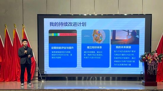 选手们的职业规划涵盖UX设计、视觉传达、服装设计、教育行业等多个设计相关领域,各有亮点:23级本科艺术设计学2班张福铖立志成为连接用户需求与商业价值的UX设计师,计划通过定期技能评估与复盘,形成个人设计方法论;23级本科视觉传达1班黎静怡坚信“好的设计能成为好生意的利器”,希望以创新视觉设计为品牌创造更大价值;23级本科艺术设计学3班吴雅娜锚定高中美术老师职业目标,结合专业所长规划考研或考公路径;25级本科视觉传达6班曾庆逸基于霍兰德职业兴趣测试,表达了对产品经理、用户体验设计等兼具创意与沟通属性领域的探索意愿。此外,多位选手还分享了自己的学生工作、支教经历、项目实践等,展现了全面的综合素养与明确的职业适配思路。