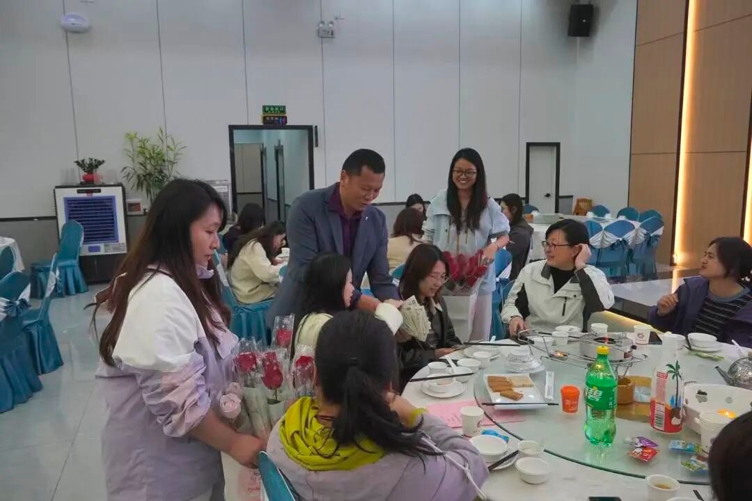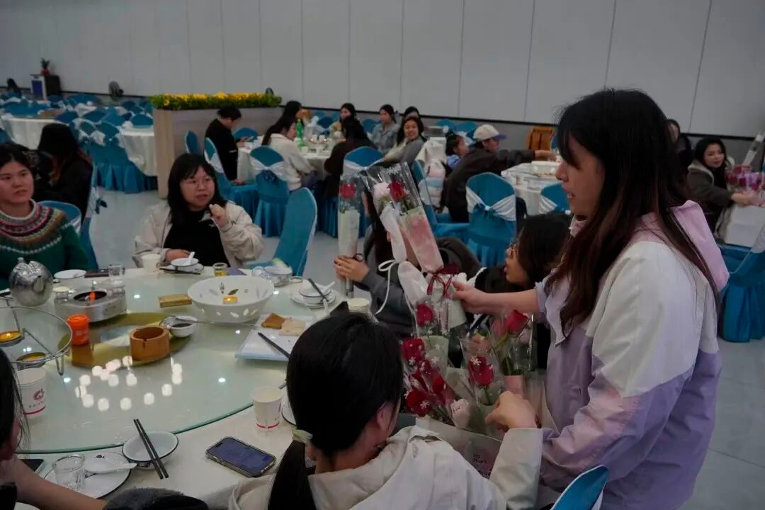 鲜花惊喜传递温暖关怀。在温暖的祝福声中,学院领导为女教职工们送上鲜花与刮刮乐彩票。一束束鲜花象征着对她们美丽与力量的赞美,一张张刮刮乐则带来了额外的惊喜与期待。