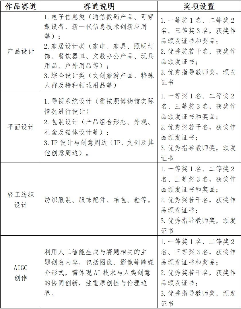 2.作品赛道为:产品设计、平面设计、轻工纺织设计、AIGC创作。