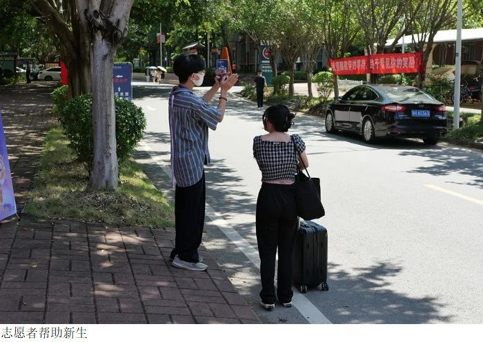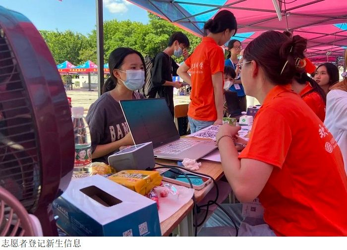 同时校园内科技广场的迎新工作接待处,各位辅导员和志愿者们也都在详细认真地解答同学们的问题,引导他们完成报道流程,介绍校园环境。在校园内能随处可见志愿者们的身影,负责帮新生拿着行李并找到所分配寝室,途中还会解答新生入学所遇到的问题,并提供帮助。