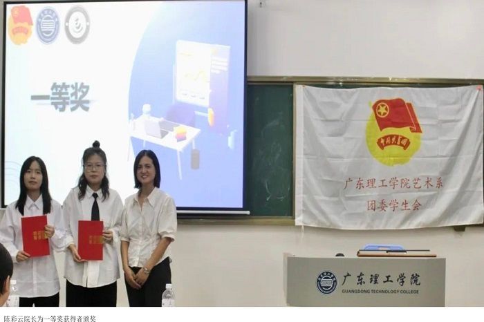 经过全体老师的讨论,《智检-柱面标签检测与识别系统领跑者》、《春寻心理工作室》等11项作品荣获优秀奖,由陈爱霞副院长为获奖同学颁奖;《纸韵创艺:线上与线下古法造纸韵创艺体验互动》等5项作品荣获三等奖,由张高美副院长为获奖同学颁奖;《微想创享——互联网智慧景观领航者》等3项作品荣获二等奖,由赵宁书记为获奖同学颁奖;《“柿”界重“染”——柿染工艺的创新性研究和推广》荣获一等奖,由陈彩云院长为获奖同学颁奖。