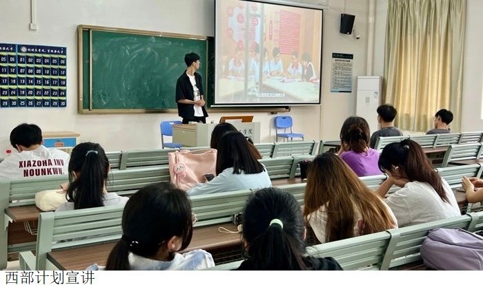 宣讲会详细介绍了“西部计划”的背景和意义,以及该计划在推动区域经济发展、促进民族团结进步等方面所起到的重要作用。接着,分享了众多志愿者在西部服务的感人故事,展现了他们的奉献精神和社会责任感。此外,宣讲会还为同学们介绍了西部计划详尽的参与流程,为有意向的同学们解答了疑惑,提供了实用的指导。