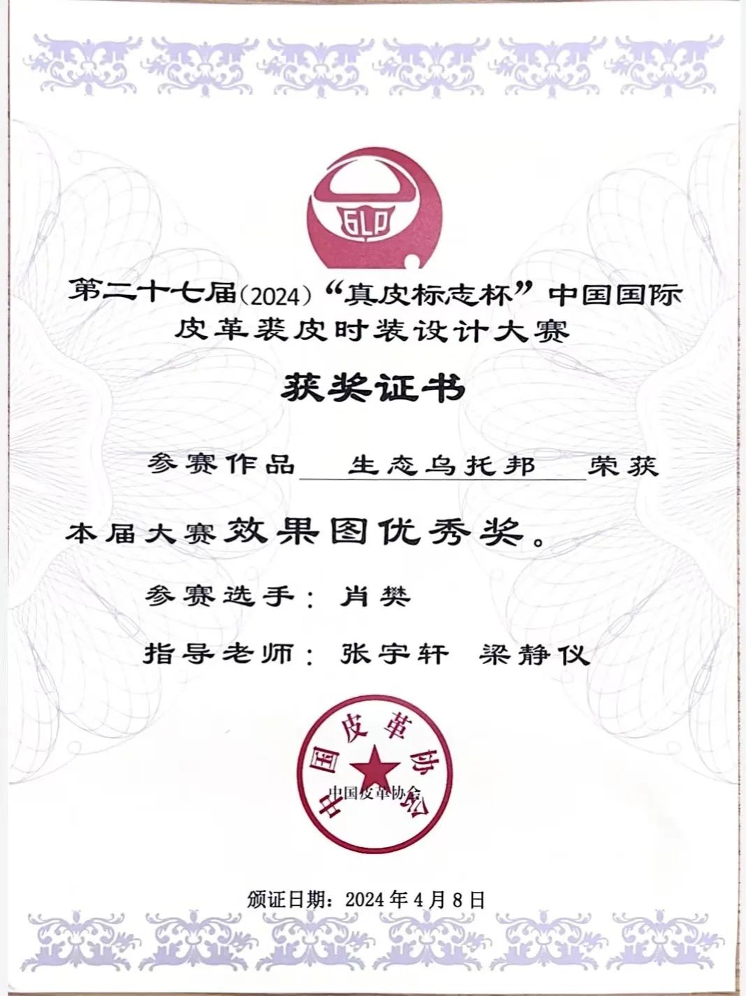 在本届“真皮标志杯”中,我院一共获得了四个效果图优秀奖。