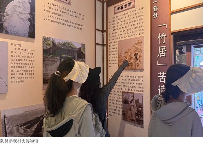 第二站是村史博物馆,突击队在这参观了解到许多关于文岗村的节庆风俗和文天祥后人故居中生平事迹展览、文氏祖训、文氏家风,以及在历史进程中已经淘汰的物品,在参观过程中看到了从文天祥的生平事迹到孝行可风的历史由来。馆内共收藏了450件展品,融合了文氏家训家风文化、文天祥爱国主义精神、文岗村发展前景等内容。通过参观文岗村史博物馆,可以了解文氏家训家风文化,传承文天祥爱国主义精神,引导队员们传承中华优秀传统文化核心思想理念、中华传统美德、中华人文精神。队员们还参观文岗村法治宣传教育基地,学习法律法规知识。